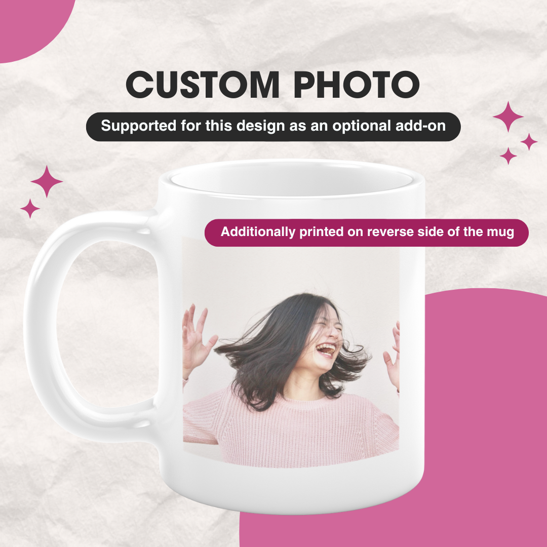 • Size: Standard mug size, 8cm (width) by 9.5cm (height)